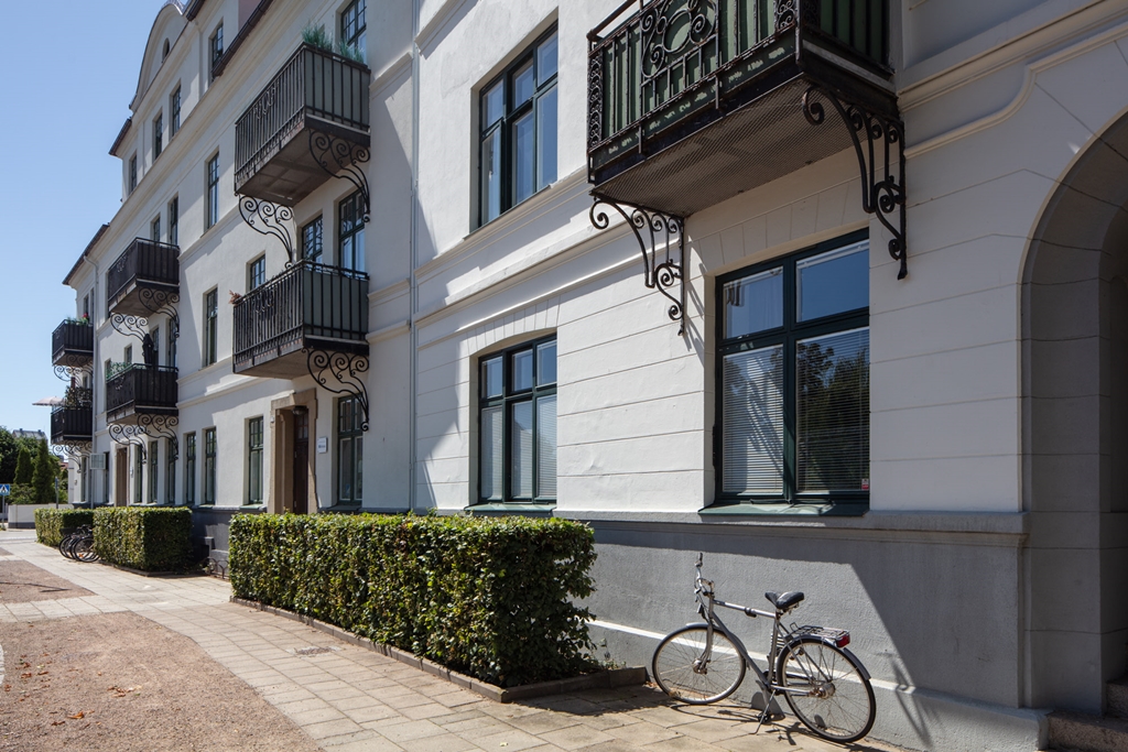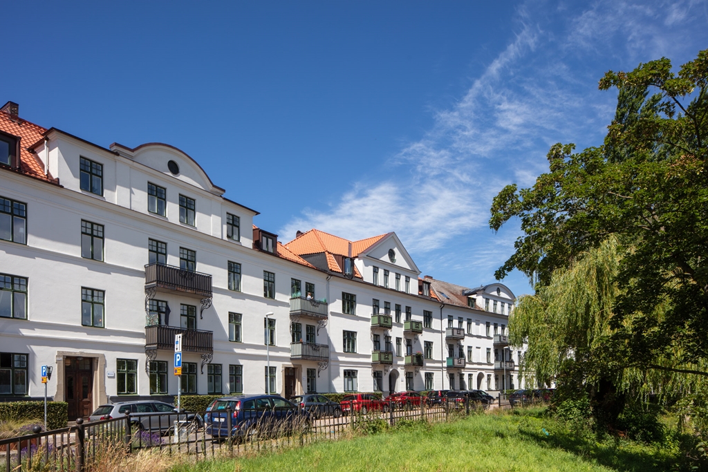 Varje lägenhet är unik i sig med högt i tak, stuckaturer, spegeldörrar, original snickerier och stora fina fönster. En del av lägenheterna har balkong mot den vackra St:Olovssjön.