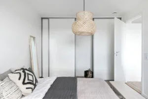 I sovrummet finns god förvaring i form av en garderob med skjutdörrar.