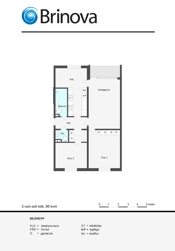 Genomgående lägenhet som totalrenoverades 2021 med nytt kök, helkaklat badrum och gästtoalett med klinker på golvet och vitmålade väggar. Hall med klinker innanför dörren och som sedan övergår till ekparkett som ligger genom hela lägenheten. Alla väggar är vitmålade. Vit köksinredning, diskmaskin, hel kyl och frys. De två sovrummen har fönster mot Öster och i det större sovrummet är garderoberna utbytta till nya. Från vardagsrummet kommer man ut till den inglasade balkongen i väster.