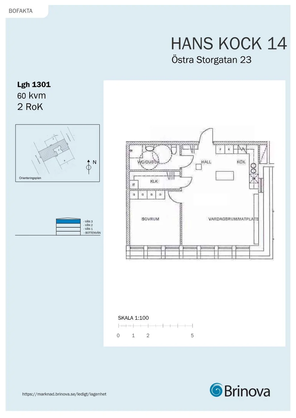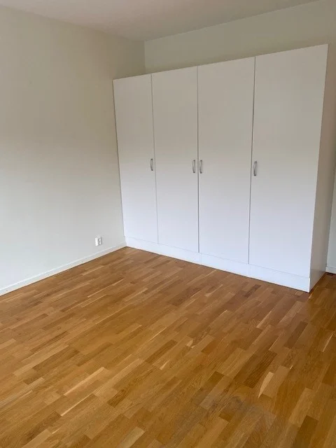 Hall, kök och vardagsrum i öppen planlösning. Lägenheten har genomgående fint parkettgolv. Väl planerat kök med mycket förvaring och köksö. Helkaklat badrum med dusch och handdukstork. Rymligt sovrum med fin förvaring såsom 4 garderober. I lägenheten finns även en stor klädkammare. Fransk balkong i västerläge.