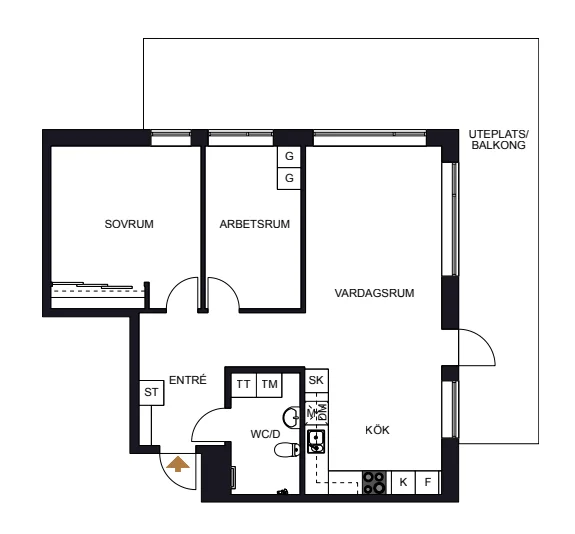 Lägenheten är på 71 kvadratmeter och belägen på tredje våningen. Ett modernt boende med öppna och ljusa ytor, genomgående ek-laminatgolv och en stor härlig hörnbalkong i sydväst läge. Lägenheten håller genomgående hög standard med helkaklat badrum utrustat med tvättmaskin och torktumlare. Fullutrustat kök med köksinredning från Ballingslöv och grå stenbänkskiva.