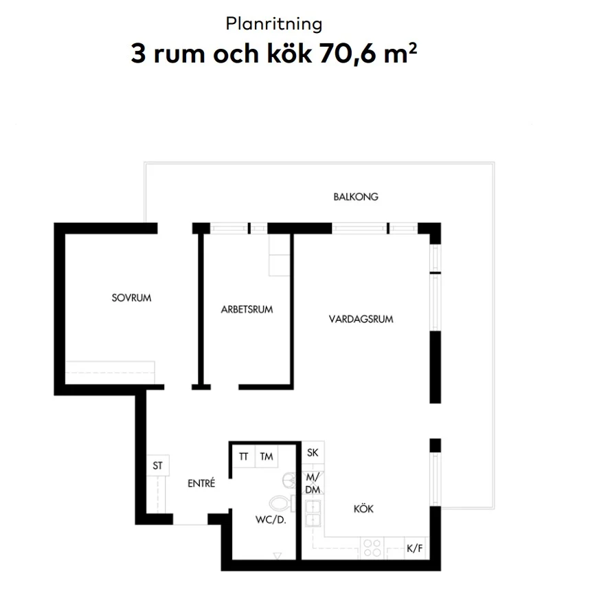 På plan 2 finner vi denna ljusa och fina lägenhet med öppen planlösning och genomgående bra materialval. Bostaden är med sina 70,6 kvadratmeter fördelat på en rymlig hall med förvaring, ett större och ett mindre sovrum. Helkaklat badrum med dusch, tvättmaskin och torktumlare. Kök, matplats och vardagsrum i öppen planlösning. Lägenheten har en stor härlig hörnbalkong i två väderstreck. Köksinredning från Ballingslöv med grå stenbänkskiva och integrerad diskmaskin och mikrovågsugn.